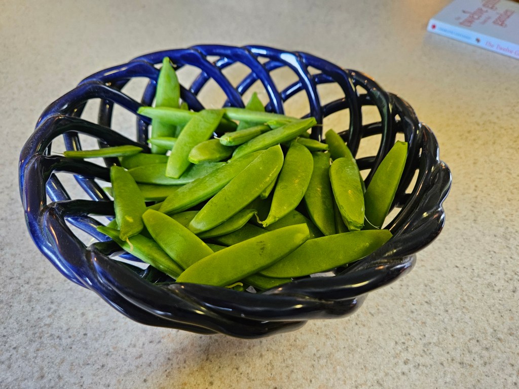 See all my sweet peas? No? I don’t see them either. But they are there. Right after I took this picture, I picked 40 and left 27 to grow. They are there.