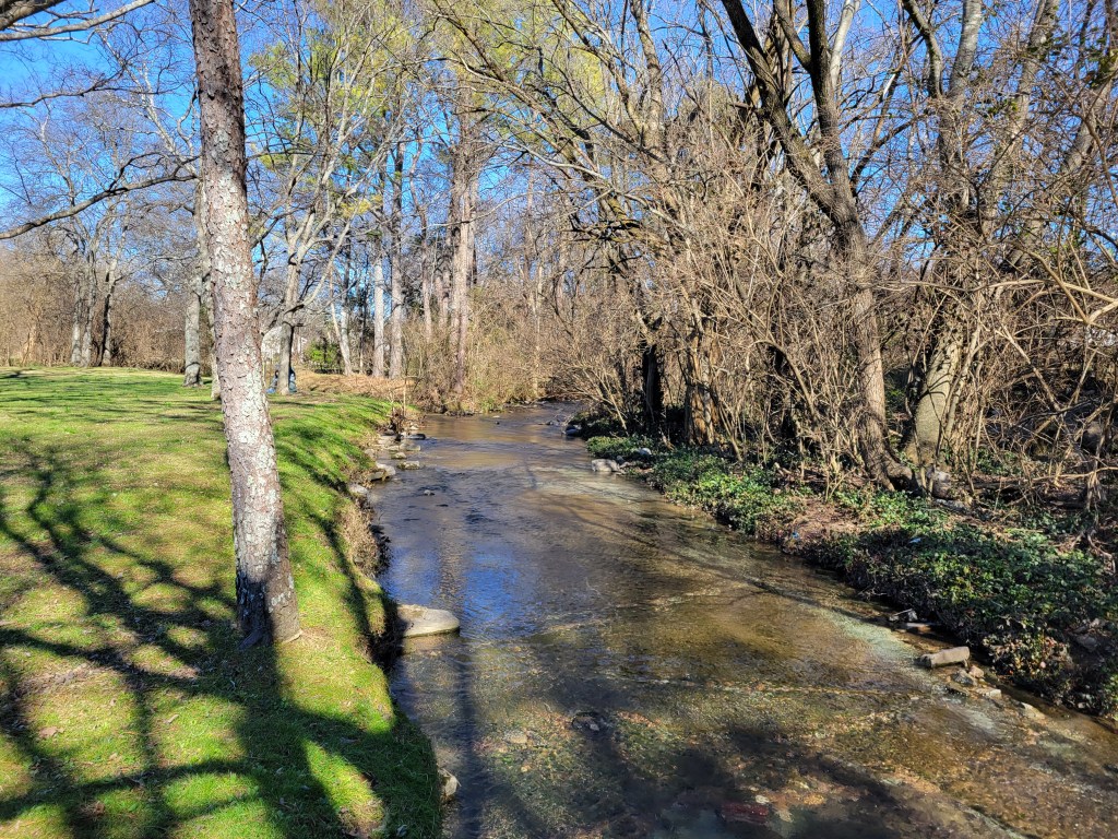 I fell in love with this lot the moment I first saw it. Two little creeks join in the back yard and flow beside the house. The sun glitters off the water; the rocks create little rapids of gurgling joy. Herons stalk the creek; ducks and fox build their nests beside it. My kids spent hours splashing through the water, collecting rocks and searching for frogs and crawfish. It is tranquil and transporting 99 percent of the time.
